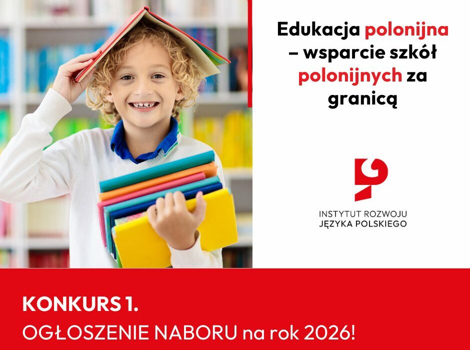 Zgodnie z zapowiedzią przedstawioną podczas Konferencji IRJP w dniu 8.12.2025 r., Instytut Rozwoju Języka Polskiego ogłasza pierwszy konkurs na rok 2026 pn.„Edukacja polonijna – wsparcie szkół polonijnych za granicą”. Cel: Przedsięwzięcia na rzecz wspierania rozwoju języka polskiego W ramach konkursu przewidziane jest finansowanie lub dofinansowanie m.in.: funkcjonowania szkół i przedszkoli polonijnych, organizacji imprez szkolnych, w…