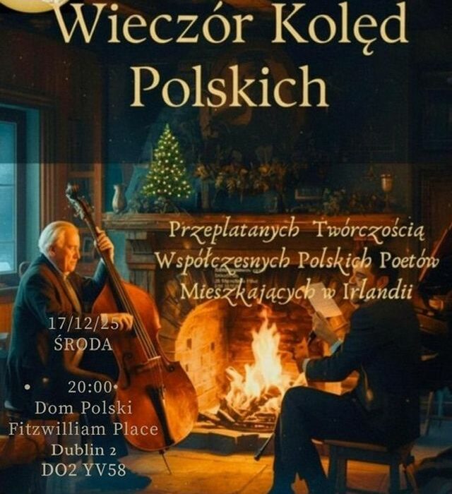 Zapraszamy na wyjątkowy Wieczór Kolęd Polskich, który odbędzie się w Domu Polskim – Fitzwilliam Place, Dublin 2 organizowany przez Polski Ośrodek Społeczno-Kulturalny w Dublinie. Wydarzenie połączy tradycję kolęd wykonanych w różnych aranżacjach muzycznych z twórczością współczesnych poetów i muzyków, skupiając społeczność polską mieszkającą w Irlandii, oraz gości z kraju. 17 grudnia (środa) godz: 20:00 Dom…